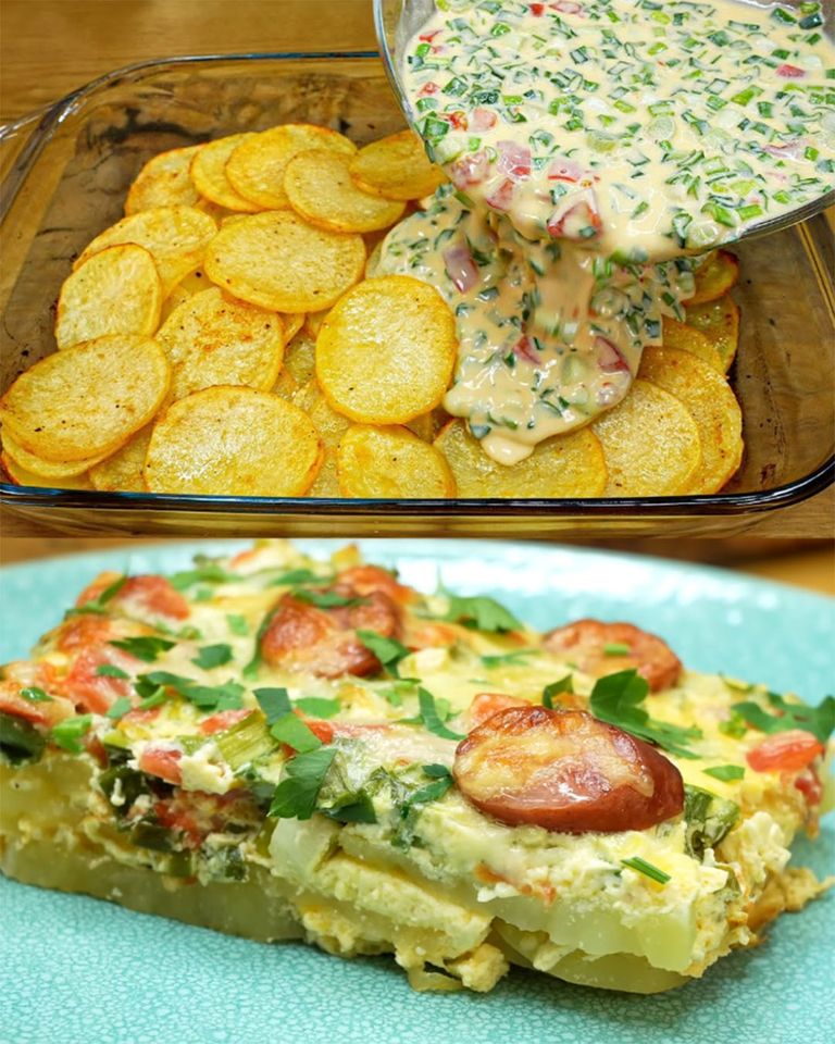 Se stai cercando una cena veloce e deliziosa da preparare in soli 10 minuti, questa gustosa casseruola di patate è la tua risposta. Con patate a fette sottili, panna acida cremosa, verdure fresche e uova, questo piatto non è solo facile da preparare ma anche soddisfacente e versatile. Perfetto per ogni pasto della giornata, diventerà sicuramente uno dei preferiti nella rotazione delle tue ricette. Iniziamo a cucinare!